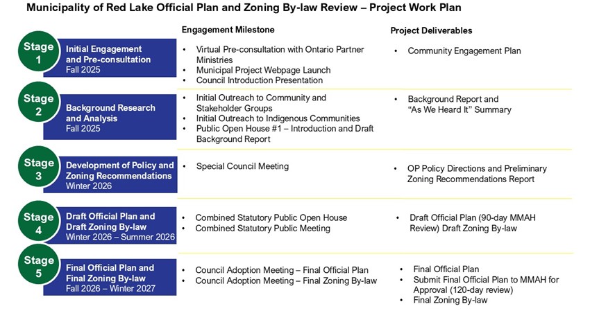 The Municipality of Red Lake is reviewing the Official Plan (OP) and Comprehensive Zoning By-Law (ZBL), which were approved in 2015. The review process will result in a new OP and ZBL for the community; and consider potential development over the next 20 years!
